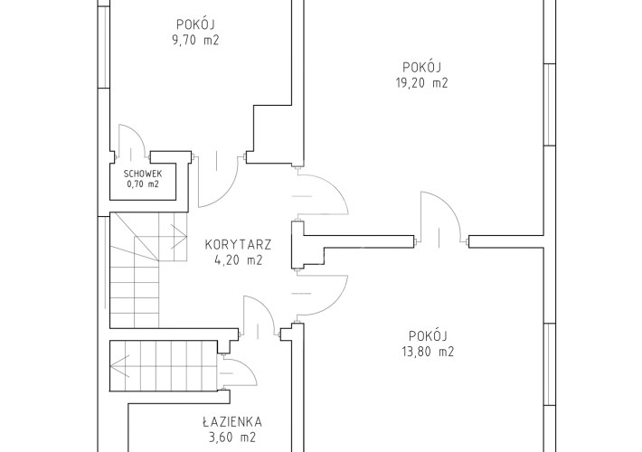 - PIĘTRO (HŚR.= 270 cm): 3 pokoje (19 m2; 14 m2; 10,5 m2, ), łazienka (3,5 m2) i komunikacja;