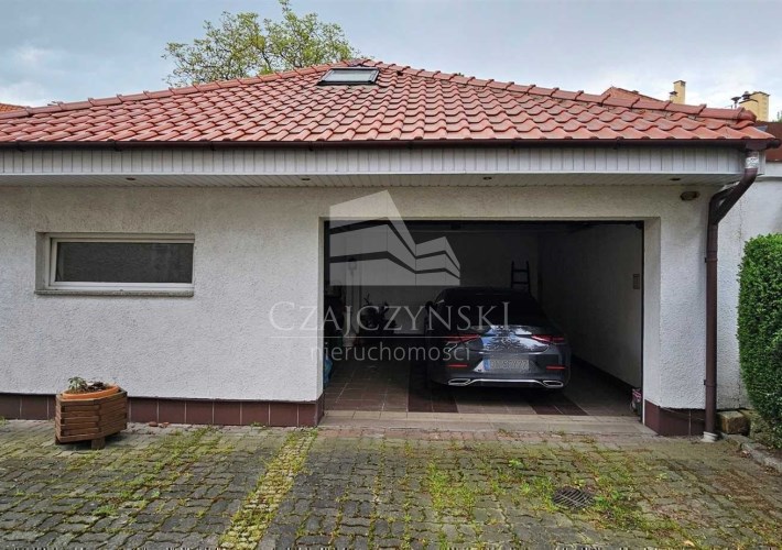 Dodatkowo na działce garaż dwustanowiskowy o powierzchni ok. 58 m2 z przyległą wiatą i bramami wjazdowymi sterowanymi automatycznie