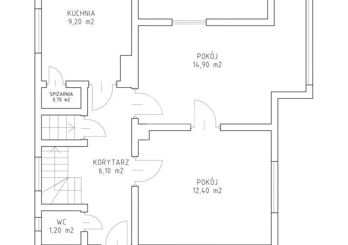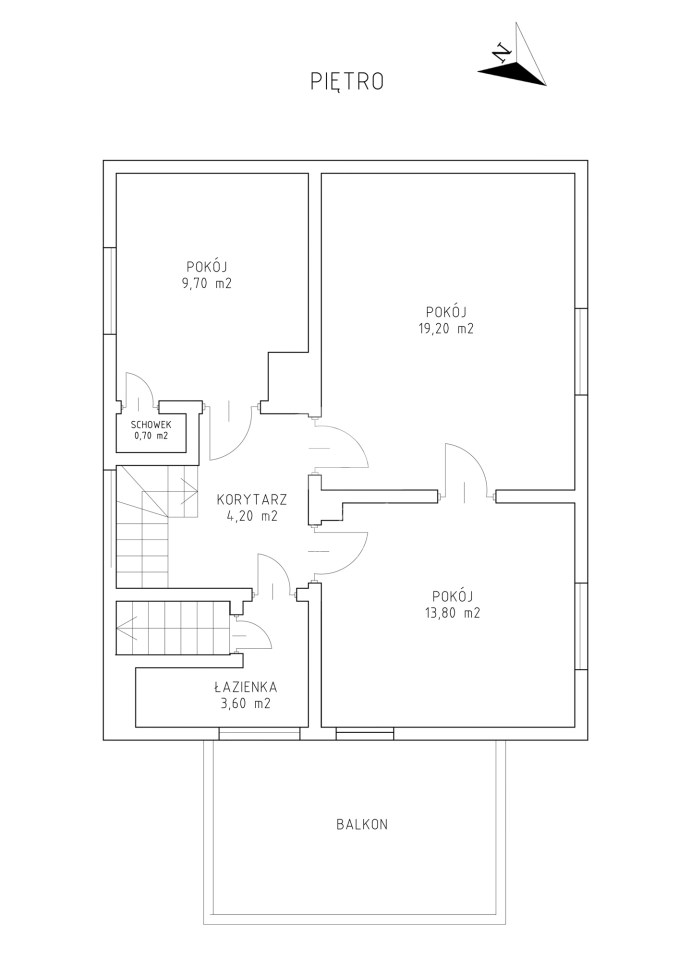 - PIĘTRO (HŚR.= 270 cm): 3 pokoje (19 m2; 14 m2; 10,5 m2, ), łazienka (3,5 m2) i komunikacja;