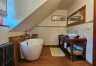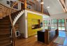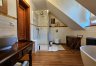 > Budynek gościnny o powierzchni ok. 90 m2, na którą składają się: salon z aneksem kuchennym (20 m2), sypialnia (10 m2), łazienka (2 m2), przedpokój (6 m2) oraz sypialnia na poddaszu (31 m2) i komunikacja.