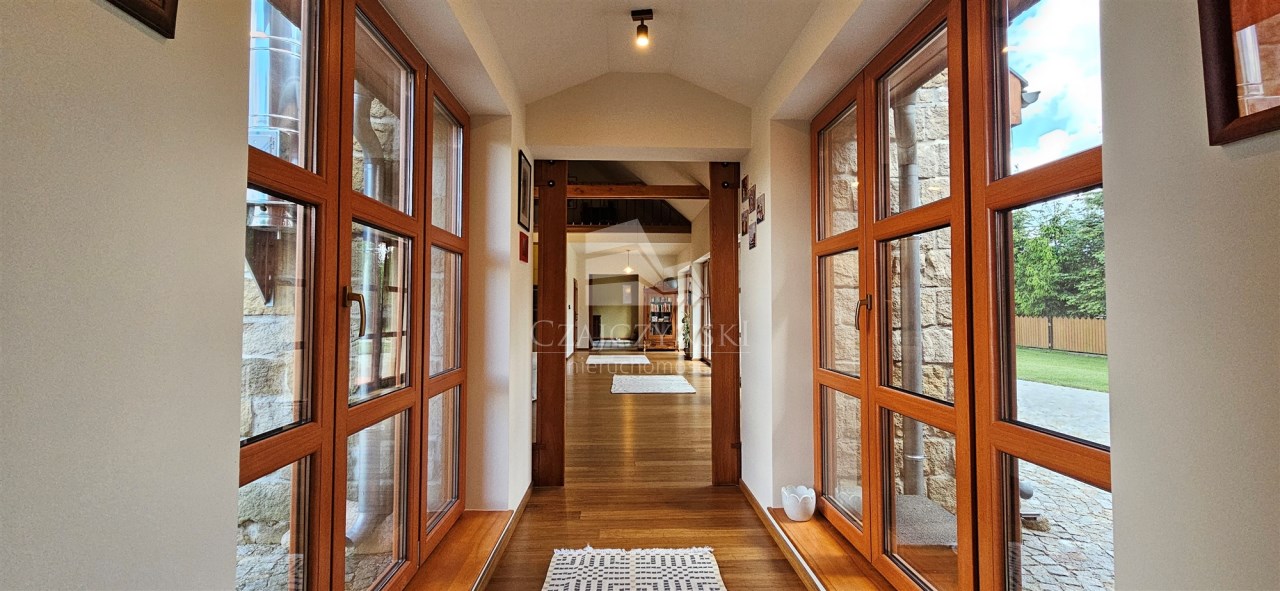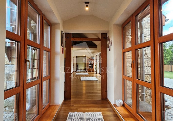 - elewacja wykończona piaskowcem oraz deskami ze świerku skandynawskiego,