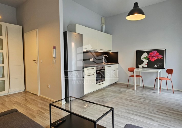 Nowoczesna i przestronna kawalerka o powierzchni 27,91m2 i wysokości 3,18m z wyjściem na duży ogródek ( 47m2), usytuowana z dala od ruchliwej ulicy