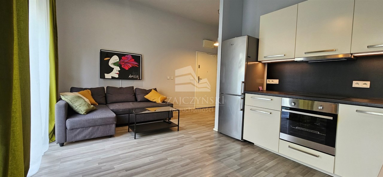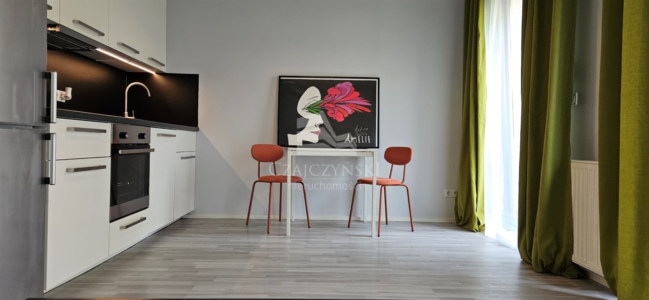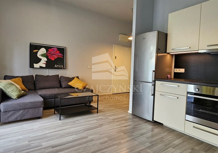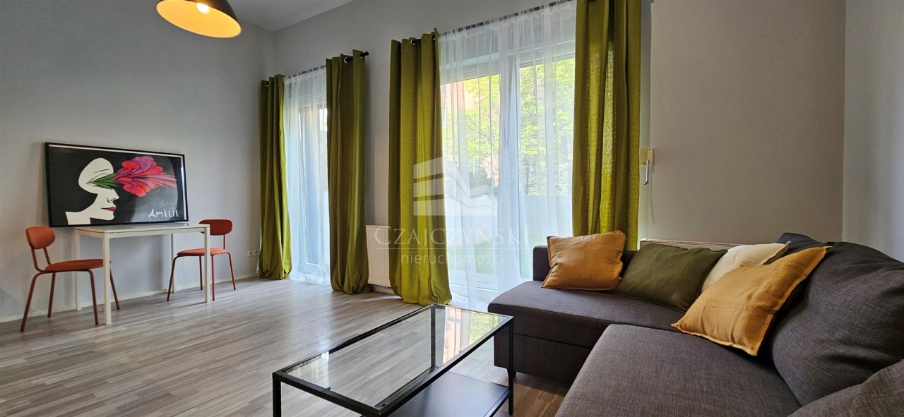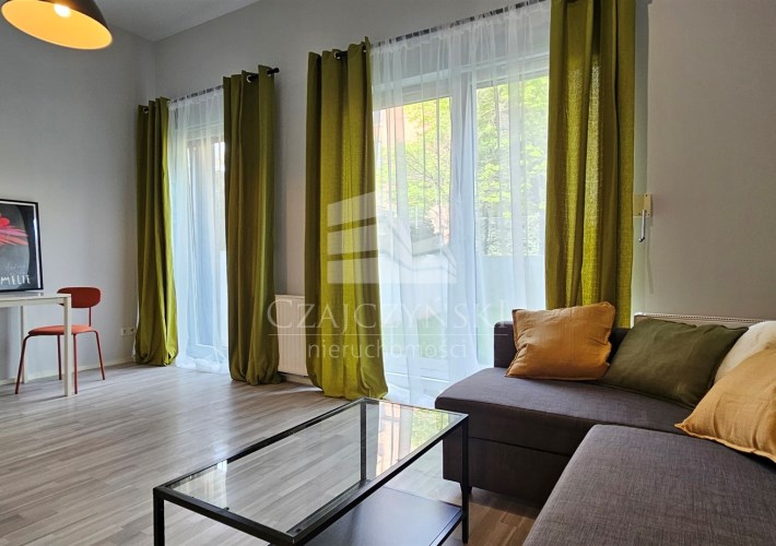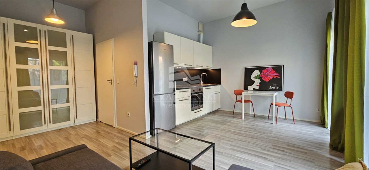 Nowoczesna i przestronna kawalerka o powierzchni 27,91m2 i wysokości 3,18m z wyjściem na duży ogródek ( 47m2), usytuowana z dala od ruchliwej ulicy