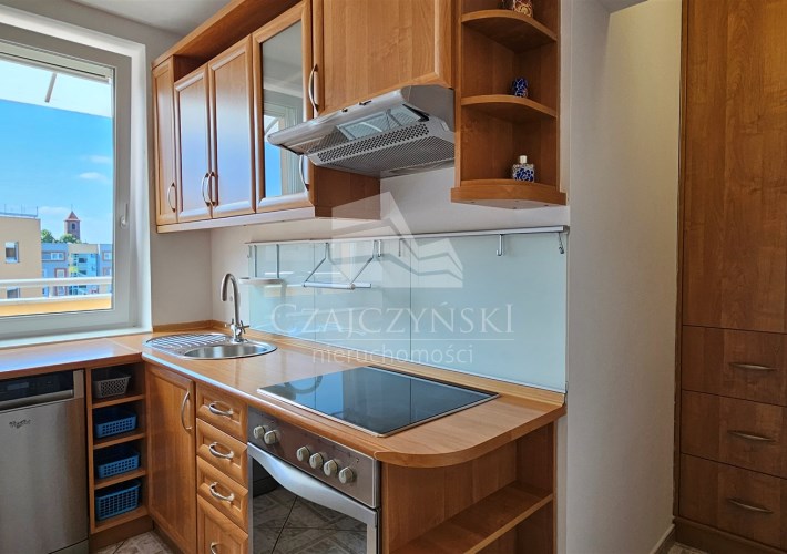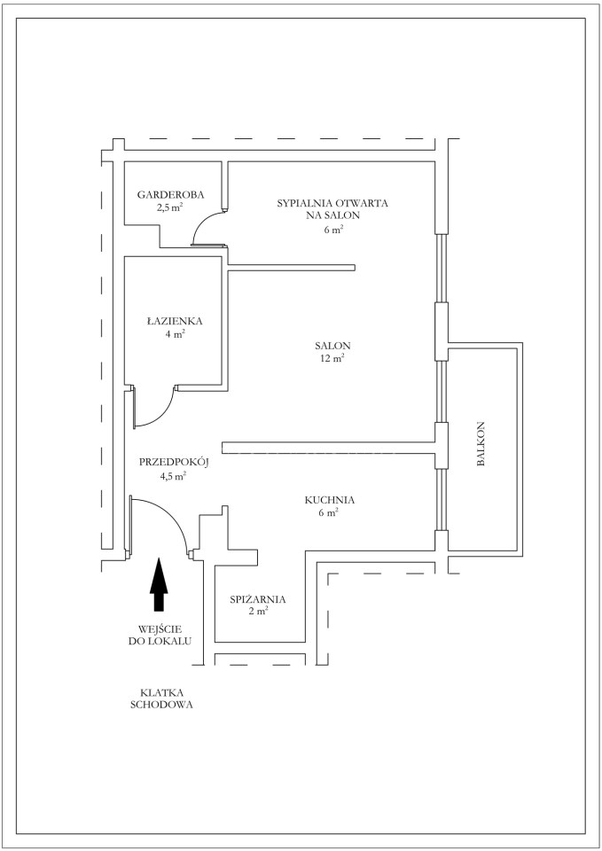 - jednostronne, przestronny i ustawny pokój z wyjściem na duży balkon, w części otwarta sypialnia z garderobą, osobna, widna w pełni wyposażona kuchnia ze spiżarnią, przedpokój, duża łazienka z wc;
