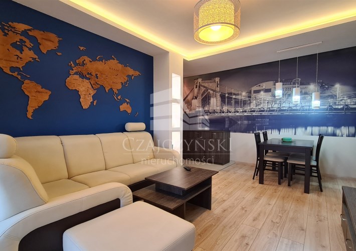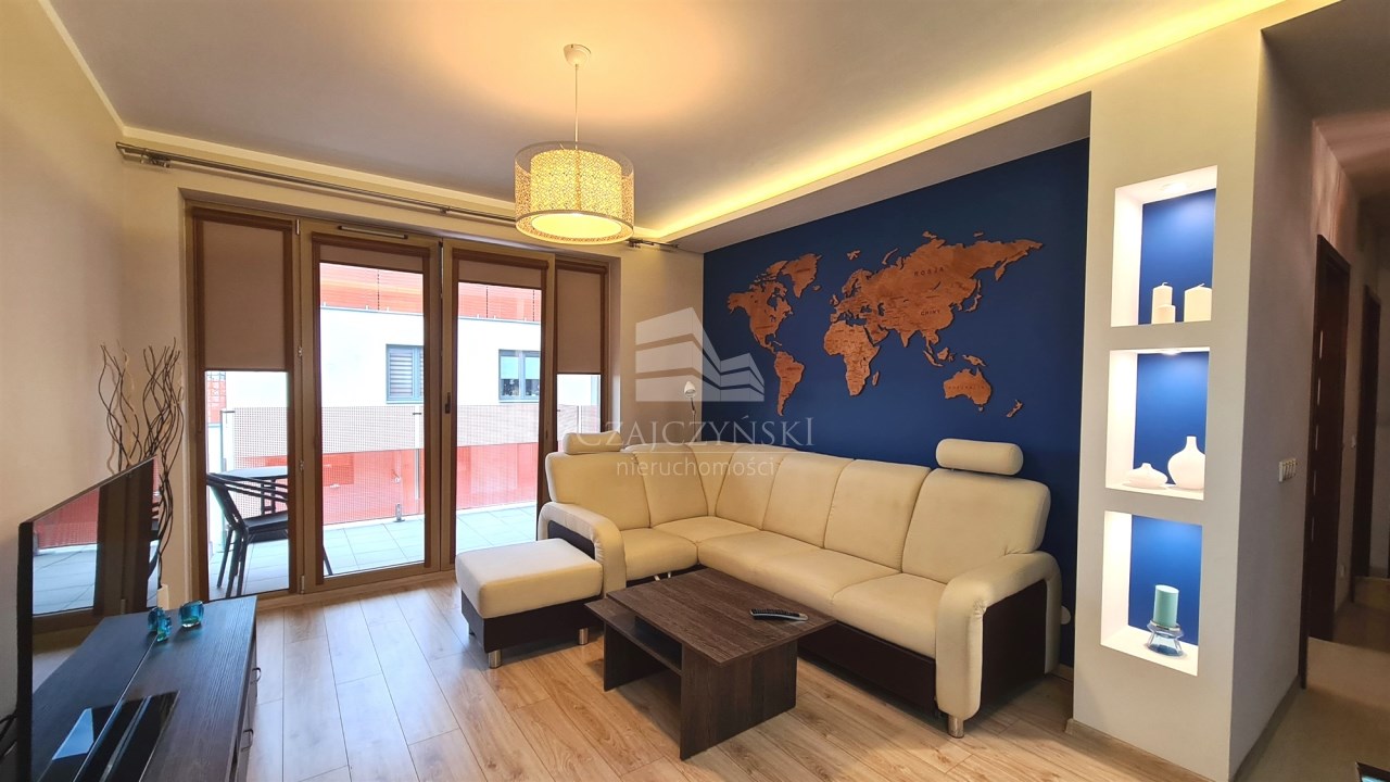 - salon z wyjściem na balkon, sypialnia, osobna, widna, w pełni wyposażona w wysokiej jakości sprzęt AGD kuchnia, łazienka z wc, przedpokój;